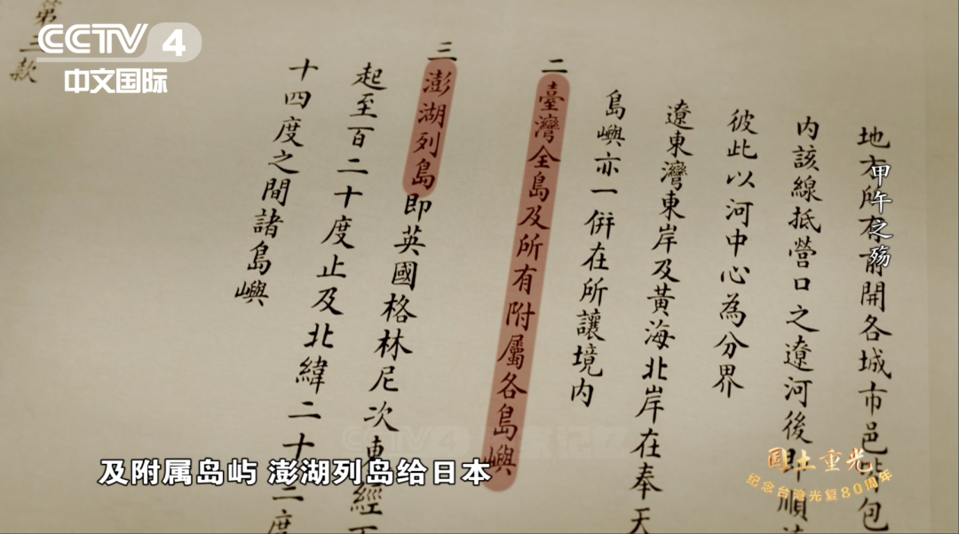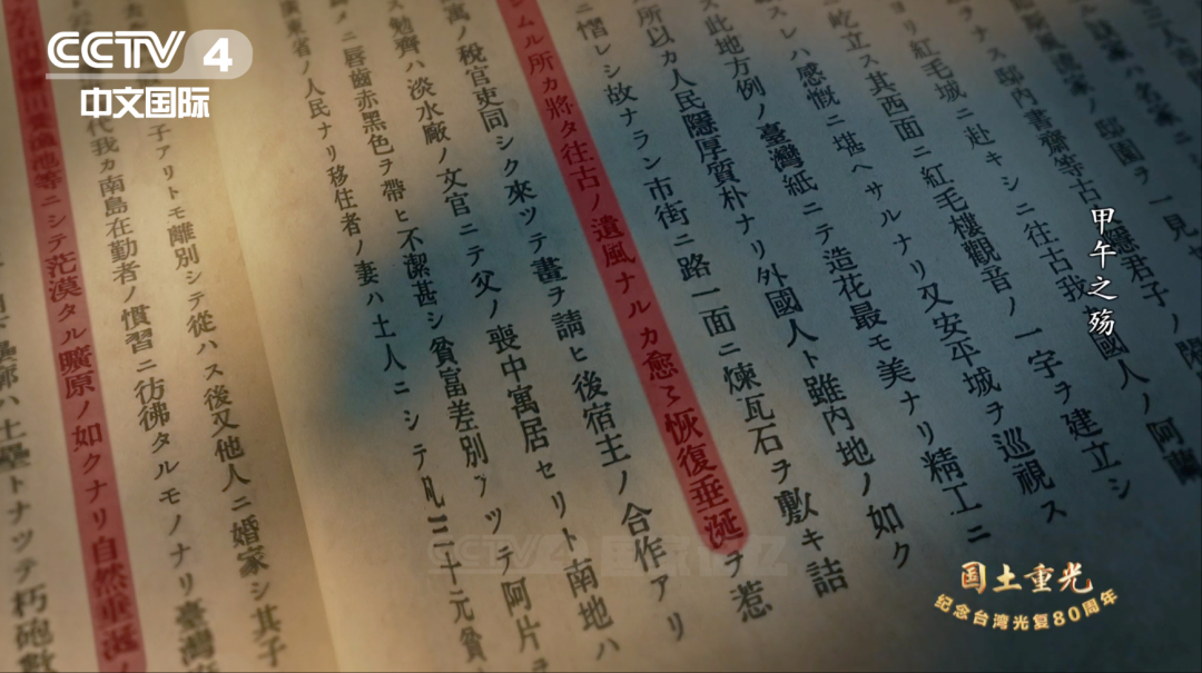 11月1日晚,紀錄片《國土重光—紀念臺灣光復80周年》播出第一集《甲午之殤》,片中首次披露日本覬覦臺灣的《樺山資紀日記》相關內容。