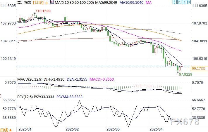 美元指數(shù)日線(xiàn)圖 來(lái)源:易匯通北京時(shí)間4月23日11:18 美元指數(shù) 報(bào) 99.20。